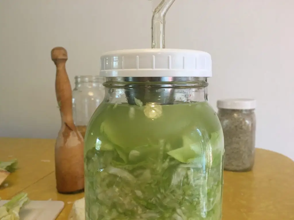 - You can buy the airlock systems online or create your own. It’s a plastic lid meant to fit a canning jar with a plastic ring underneath to help the seal plus a hole with an o-ring in it. You fit any variety of airlock easily available at brewing supply stores or online in the hole. There are much cooler tools available online that solve some problems, but, get acquainted with fermenting before you invest in a bunch of stuff. *read further to find out why I recommend airlock systems vs. open air systems.