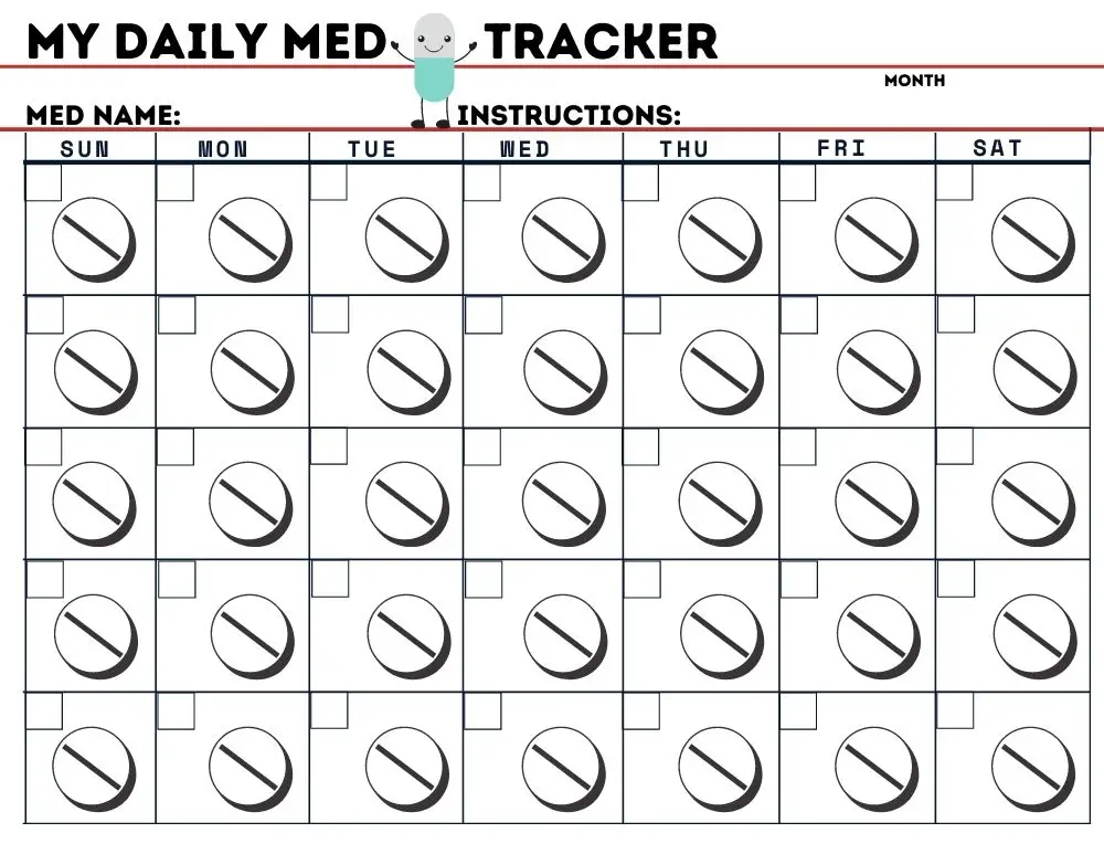 Or, you (or the child) can color in the whole tablet if it’s only one per day. Or, if if the medication is administered 3 times a day, draw a line down one half and now there are 3 parts to color in. Lots of options!