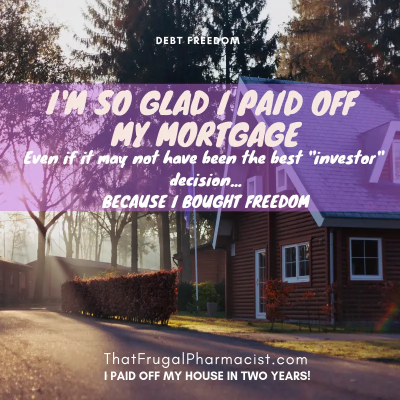 Congrats on the mortgage free club. I stand by it— maybe could have made some more lucrative decisions, but the stress reduction is priceless!